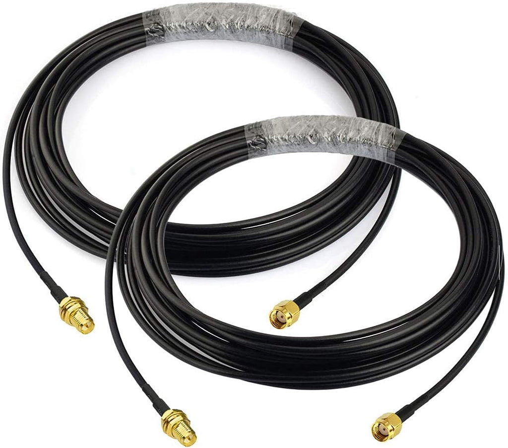 Bingfu WiFi Antenna Extension Cable 2-Pack RP-SMA Male to RP-SMA Female Bulkhead Mount RG174 Cable 20 feet for WiFi Router Security IP Camera Wireless Network Card Adapter