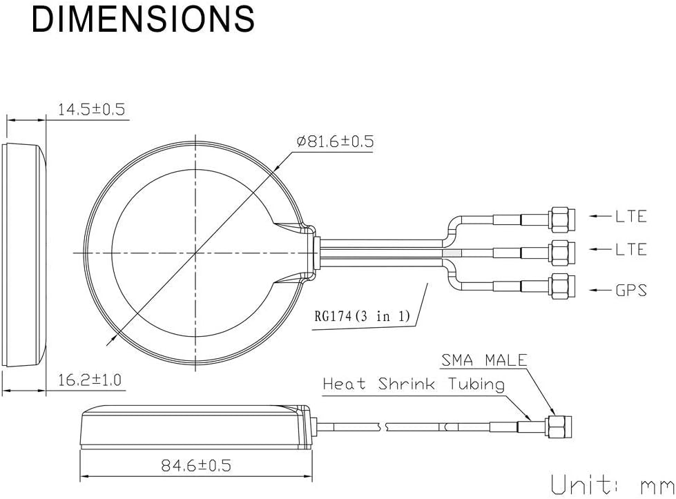 - Feature: 2 x MIMO 4G LTE Cellular Antenna + 1 x GPS Antenna; Mounting: Adhesive Magnetic Mounting; Connector: SMA Male Connector; Cable: Dual 3m Cable;