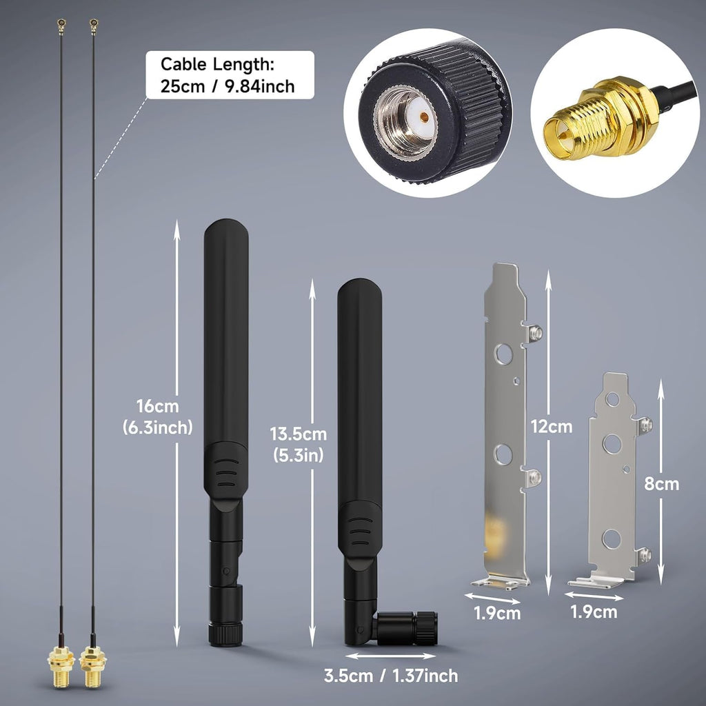 - Compatible with Intel AX200NGW 8265AC 8265NGW 7265AC 9560AC M.2 NGFF Wireless Network Cards External WiFi Antennas.