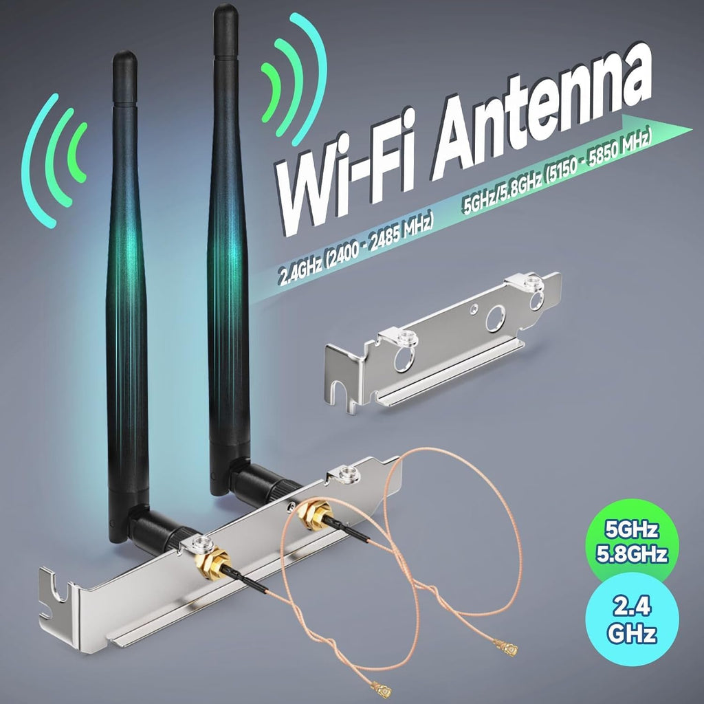 | Compatible with | Fit most wireless product, such as for PS4/FPV UAV Drone/Green Mountain Wifi Grill/Outdoor Cam/Desktop PC/Mini PCIE Wifi Cards/Most Wireless Routers/Video Game Consoles/Wireless Access Point AP/Gaming Motherboard/Home Theater PC/Wifi TV Box/Wifi NVR/Wifi 6 card/Security Camera |