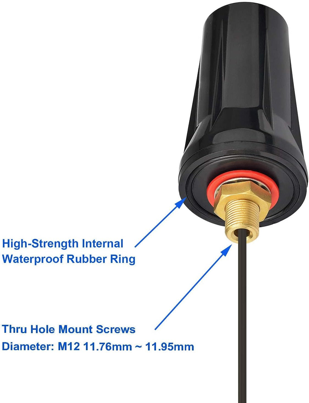 - Feature: Gain: 5dBi; Direction: Omni-directional; Waterproof: Rainning Proof; Feature: Fixed Wall Mount; Thru Hole Mount; Antenna Mounting Screws Diameter: M12 11.76mm-11.95mm; Cable Length: 3m/10 feet; Connector: SMA Male Connector; with RP-SMA Male Connector Adapter and Sma Female to F type Male Adapter;
