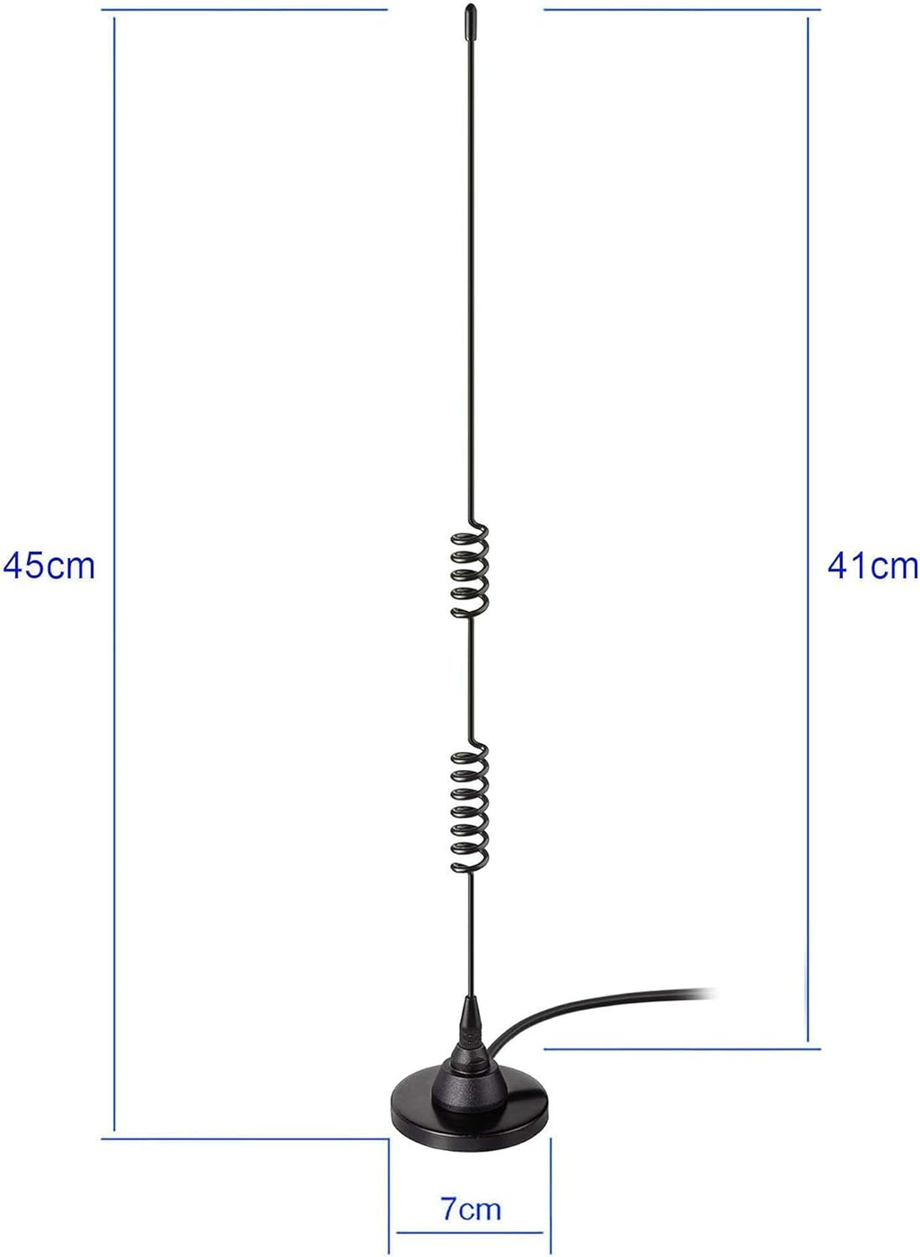 - Frequency Range: 20MHz - 1300MHz; Compatible with: Public Radio Scanner, Ham Radio, Two Way Radio, Walkie Talkie, Mobile Amateur Radio; VSWR: < 2.0; Impedance: 50 ohm; Feature: Magnetic Base Mounting; Antenna Height:45cm; Cable Length: 3m RG58/U Cable; Antenna Connector: BNC Male Connector;