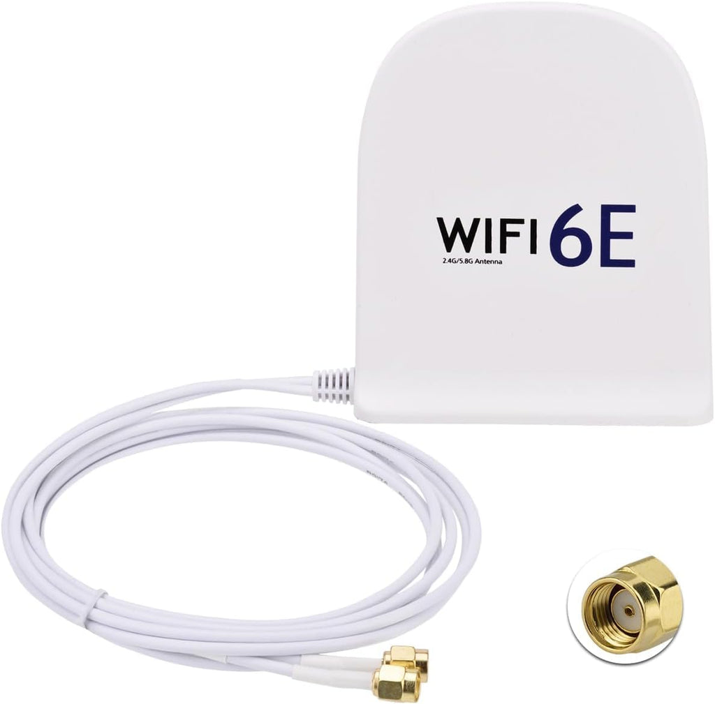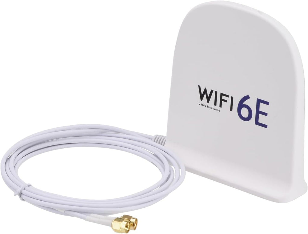 - Tri-Band WiFi: 2.4g(2400-2500MHz)/5g(5150-5850MHz)/6g(5900-7125MHz); Support 802.11 b/g/n/ac/ax/wifi 6/wifi 6e; Gain: 8dBi; Direction: Omni-directional; Antenna Connector: RP-SMA Male Connector